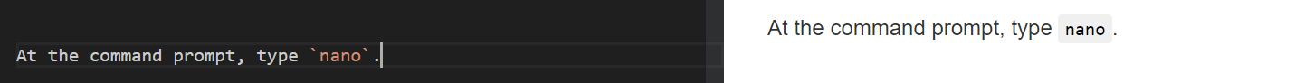 | At the command prompt, type `nano`. | At the command prompt, type <code>nano</code>. | 명령 프롬프트에서 를 입력합니다 nano. |
