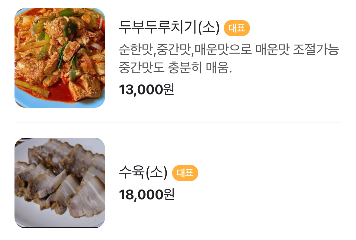 담백하고 부드러운 두부에 매콤한 양념이 잘 어우러진 메뉴입니다. 특히 밥과 함께 먹거나 면사리를 추가해서 먹는 방법이 인기 좋습니다.