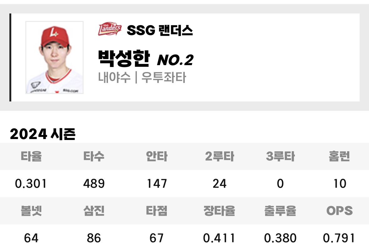 모든 타격 지표가 박성한이 우위에 있습니다.
